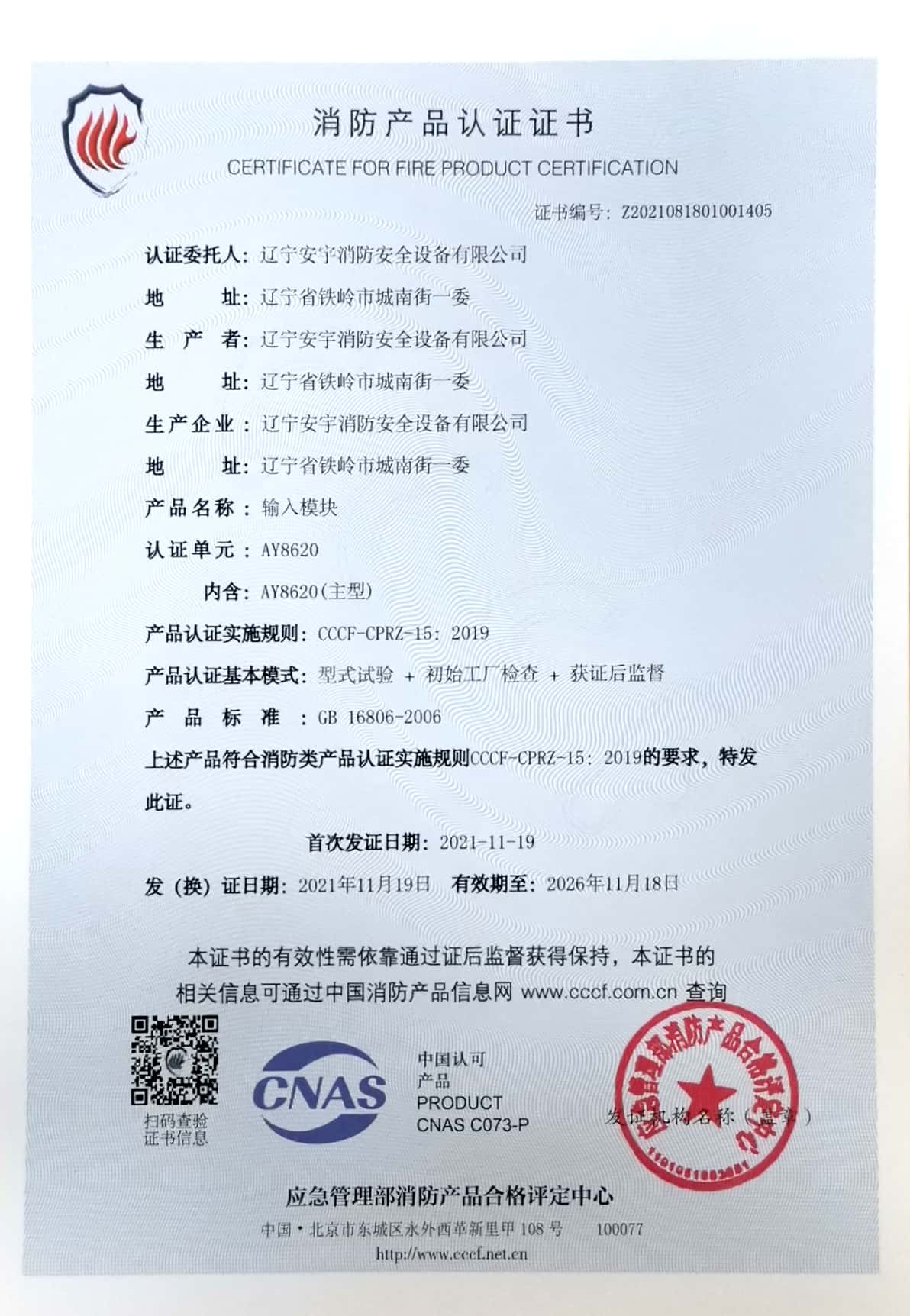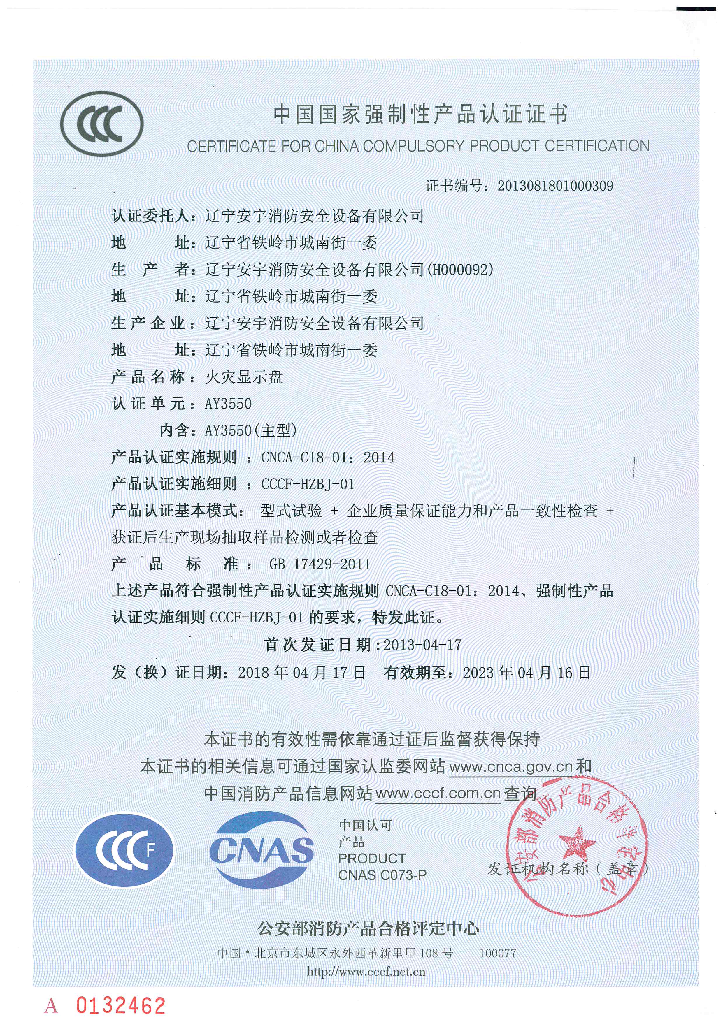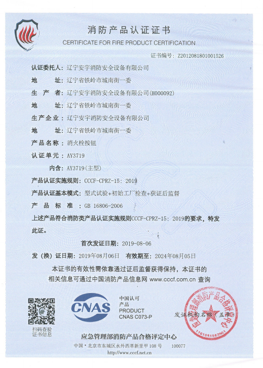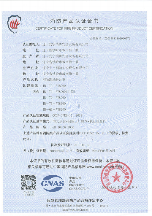 公司以高素質的職業化人才隊(duì)伍、完善的現代化管理機製和質量管理體係,獲得了(le)中國(guó)認證(zhèng)機構(gòu)國家認可委員會(huì)(CNAB)認可(kě)的中國質量認證中心(CQC)質量管理體係認證公(gōng)安部消防產品合格評定中心的產品質量認證中國強製性產品(pǐn)認證(China Compuisory Certification ,簡稱3C)認證,使安宇產品在(zài)技術含量及產品的(de)質量(liàng)和(hé)穩定性方麵始終處於國際同行業前(qián)端水平。