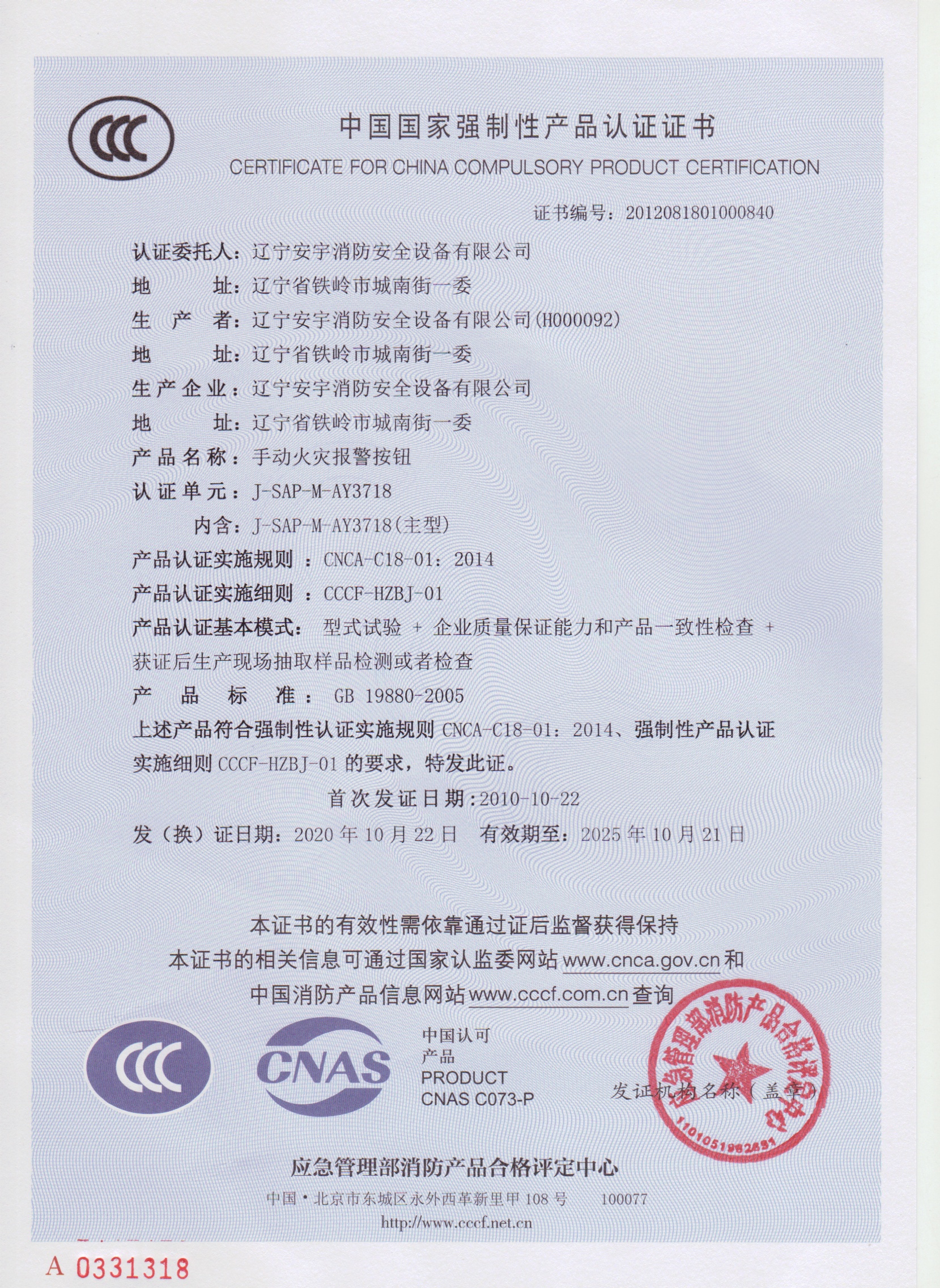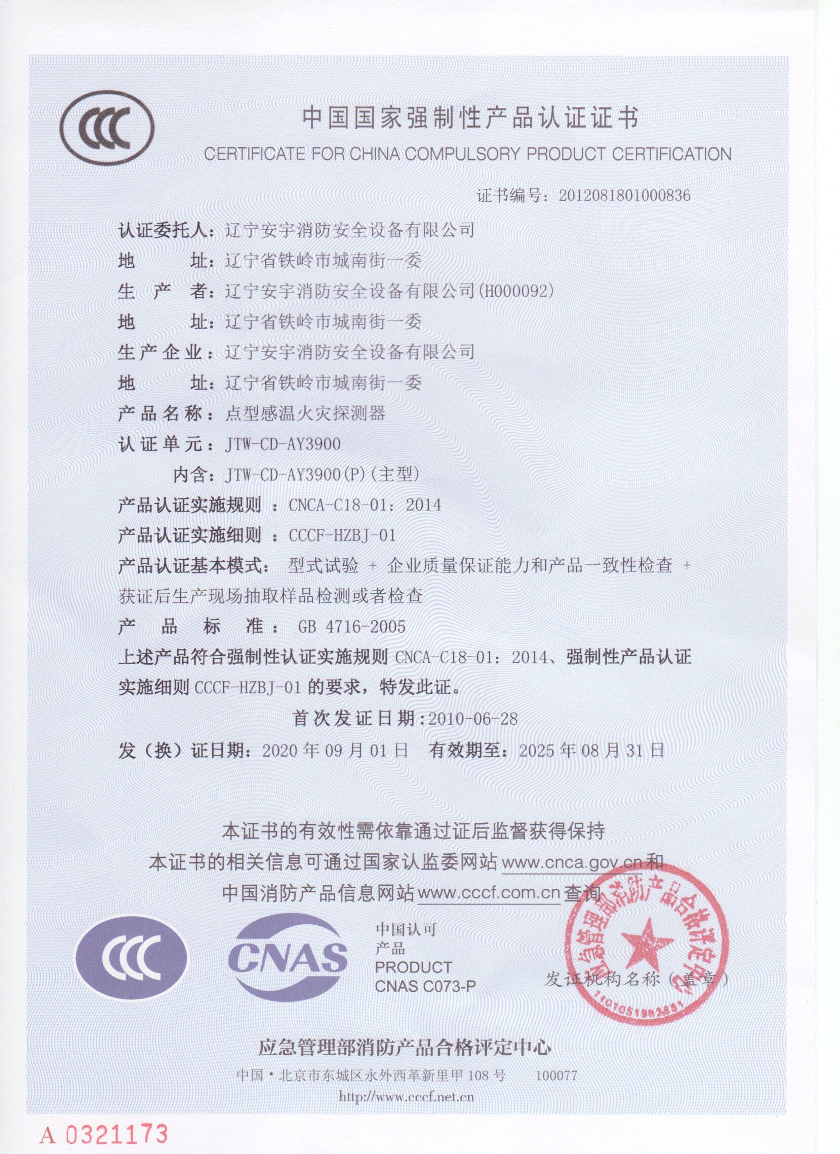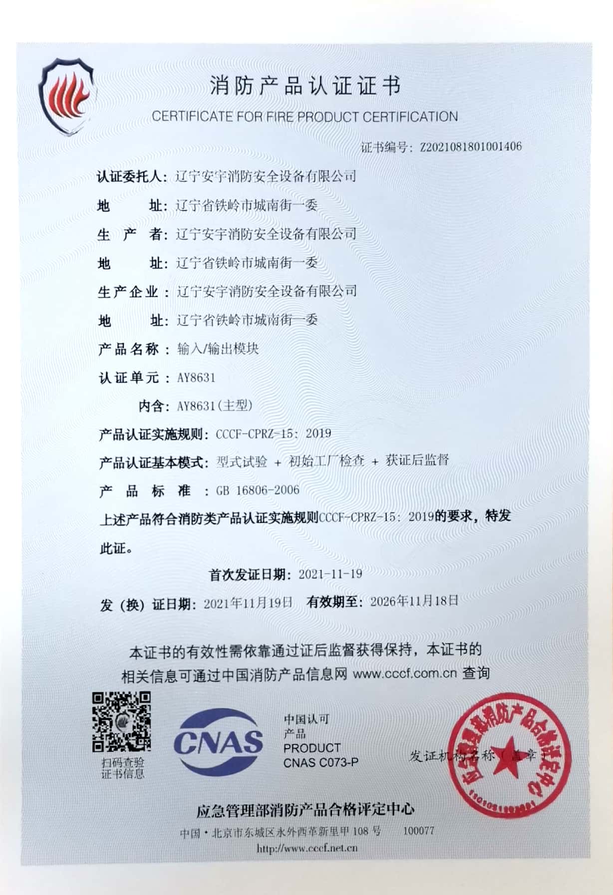 公司以高素質的職業化人才隊(duì)伍、完善的現代化管理機製和質量管理體係,獲得了(le)中國(guó)認證(zhèng)機構(gòu)國家認可委員會(huì)(CNAB)認可(kě)的中國質量認證中心(CQC)質量管理體係認證公(gōng)安部消防產品合格評定中心的產品質量認證中國強製性產品(pǐn)認證(China Compuisory Certification ,簡稱3C)認證,使安宇產品在(zài)技術含量及產品的(de)質量(liàng)和(hé)穩定性方麵始終處於國際同行業前(qián)端水平。